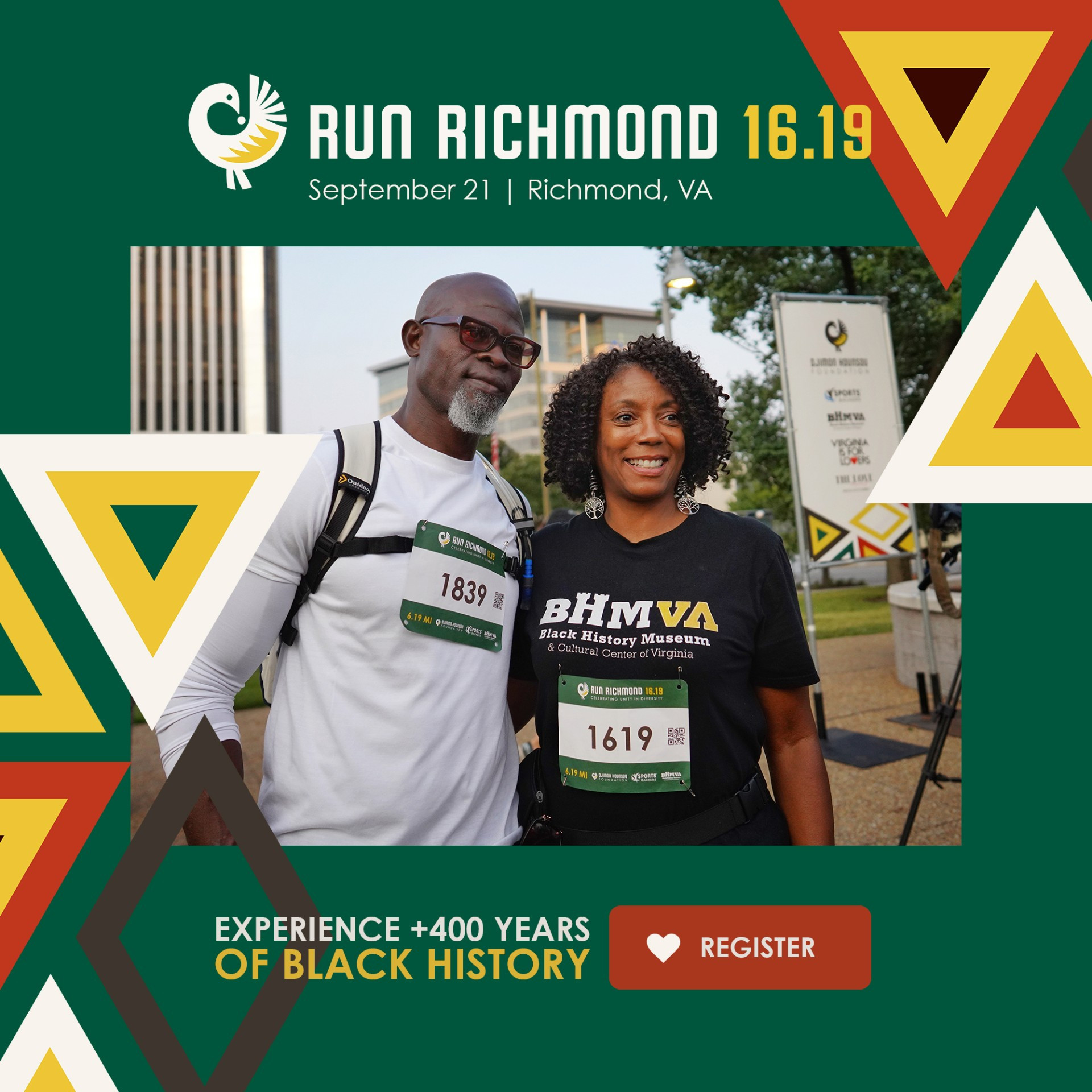 Don't miss this unique running event that blends history, culture, health, and wellness into one extraordinary and meaningful weekend! Two-time Academy Award Nominated Actor & Humanitarian Djimon Hounsou has created a celebration to highlight the achievements and sacrifices of African Americans via two symbolic courses of 16.19K and 6.19K through historic places in Richmond, VA where Africans first set foot on American soil